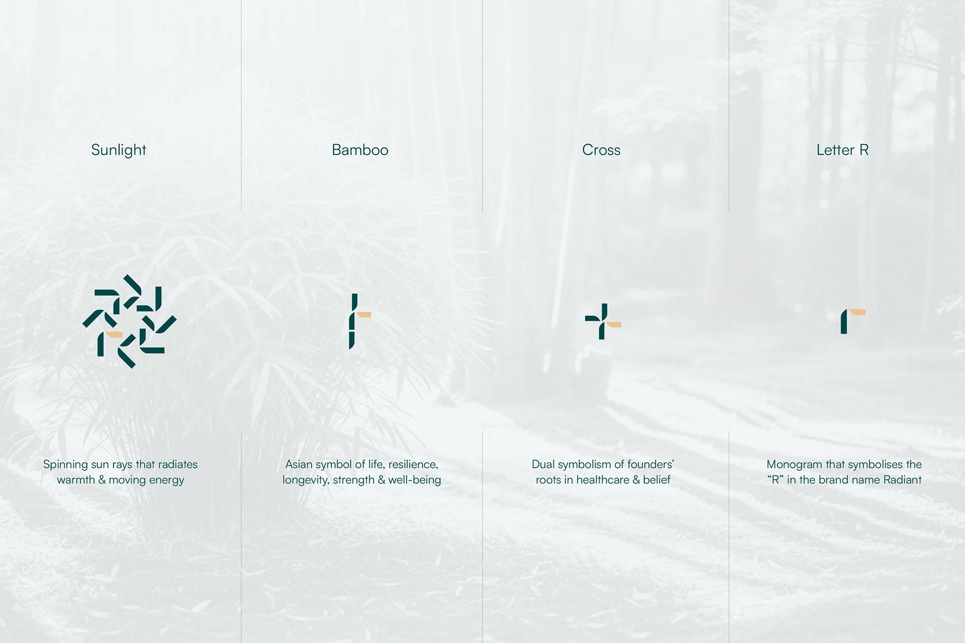 We explored deep Asian symbolism to find resonance with the brand's heritage. The 'Bamboo' was selected for its representation of Asian resilience, flexibility, and upward growth, mirroring the patient's journey to recovery. Paired with the 'Radiant Sun,' a universal symbol of energy symbolizing positivity in the name.
